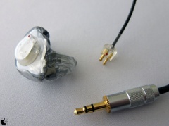 FitEar Priavteと比べて、iPhone 4のDACコンバーターノイズが聞こえなくなり、わずかに音の解像度が落とされている感じがしますが、ほとんど回りの音が聞こえなくなるため、iPhone 4のiPod再生時に、ほんの少しボリュームを上げただけで、音楽をはっきり聴く事が出来ます。