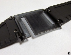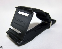 ベルトは肉厚シリコン製で、中央部分に、iPod nano (6th generation)を装着するためのカットが施された樹脂パーツが装着されています。