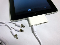 AppleコンポジットAVケーブル」の機能を一つにまとめたようなiPhone/iPod touch/iPad用Dockアダプタです。