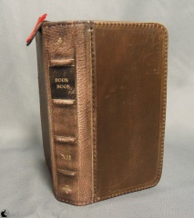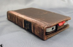 本革に古い本のような加工がされていて、外側を見ただけなら古書にしか見えないケースです。