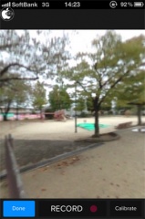さっそくGoPanoアプリを起動すると、プレビュー画面の時点でパノラマ表示が開始され、指でフリックするとクルクルと回転したプレビューを見る事が出来ます。