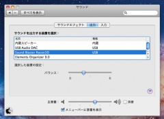 Sound Blaster Recon3DをUSBケーブルでMacと接続し、システム環境設定>サウンドの出力タブで「Sound Blaster Recon3D」を選択します。