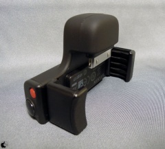 本体は、iPhone 4S/4/iPod touch (4th generation)をバネによって挟み込む機構が搭載されていて、Dockコネクタに加え、シャッターボタン、録画ボタンが人差し指にかかる位置に装備されています。
