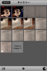 プレビュー画面の小さいサムネイルボタンをタップすると、アプリ内のギャラリーが表示されます。