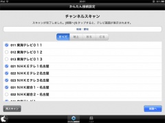 ピクセラ製のiPhone/iPadアプリ「デジタルTV(StationTV i)」を起動し、デジタルTVチューナーが見つかるとチャンネルスキャンが開始されます。