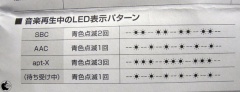 音楽再生時にどのコーデックで再生されているかは、音楽再生中のLED表示パターンで確認することが出来ます。