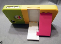 4色のポップな配色されたケースで、模様部分が稼働しフラップスタンドとして機能します。