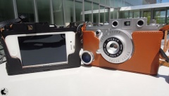 iPhone 4SにGIZMON iCAを装着しただけでもデジタルカメラ風になりますが、レザーボディーケースを装着することでさらにデジタルカメラ度が増します。