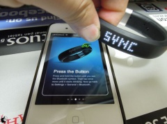 Bluetoothアイコンが表示されるまでFuelBandのボタンを押し続けます。その後、ボタンをもう一度軽く押して、ペアリングモードを開始します(Bluetoothアイコンが点滅します)