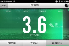 MoreからLIVE MODEを選択すると、Nike+ Pressure Sensorから送られてくる方向、バランス/安定性、運動強度などのデーターがリアルタム表示されます。