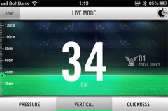 Verticalを選び、その場でジャンプすると、スピード、ジャンプの高さなどを計測して、ジャンプした高さを表示してくれます。