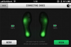 アプリを起動して、Nike+ Sport Sensorを靴底に装着し、かかと部分を押してペアリングを確率します。