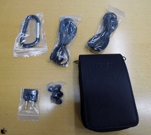 付属品は、フェイクレザー製キャリングケース、エアラインアダプタ一、充電用USBケーブル、シリコンイヤピース(XS、S、M、L)、コンプライイヤーピースとなっています。