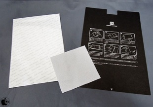 パッケージには、液晶画面用フィルム2枚、クリーナークロス、ダストリムーバーが同梱されています。