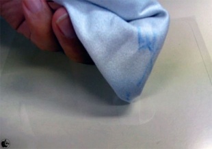 貼り方は、クリーナークロスで、iPad miniの表面のゴミを取り除きます。