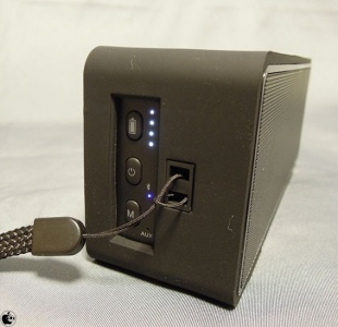 反対側には、充電用のmicro-USB端子、ライン入力端子が装備されています。