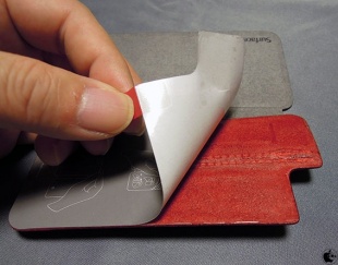 iPhone 5sには、背面側に接着して使用する方式で、何度でも取り外し/装着することが出来ます。