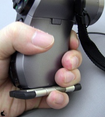 この、閉じた状態でXacti DMX-HD1010を握ってみると、この797 Modopoketが指の間に入って、ホールド感が増した感じがします。