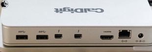 USBは3.0で、Belkin社のThunderboltドックである「Thunderbolt Express Dock」が同じUSB3.0ながら上限帯域を2.5Gbpsに制限しているため高速なデバイスを繋ぐと転送速度が低下するのに対し、本機では速度への影響はなかった。(G-Technology社のG-DRIVE USB3.0でテスト)