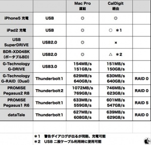 本機はThunderbolt1規格のドックゆえ当然とも言える結果だが、現行のMac Pro (Late 2013)やMacBook Pro (Retina, Late 2013)といったThunderbolt2規格のマシンでPROMISE等のThunderbolt2RAIDを運用する際には本機は間に入れないようにしたい。