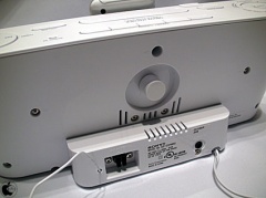 背面を見ると、iPodとスピーカーとのスペースを調整するためのダイヤルが用意されています。