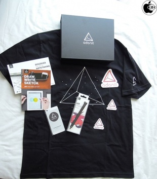 プレス向けパッケージは、Adonit特製ステッカー、Adonit特製メモ帳、Adonit特製Tシャツ、パンフレットなどが入った特別仕様となっています。