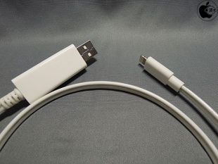通常のLightningケーブルと比べて、USBコネクタ部分が大きくなっています。