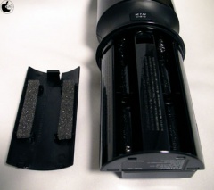 本体をひねってロックを外し、外カバーを外すと、iPodのDockコネクターが現れ、各種iPod用のスペーサーを使って装着することが出来ます。