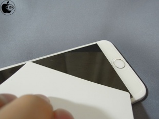 1番の裏面フィルムを剥がし、Touch ID部分を中心に、底面をガイドに当てながらゆっくりと落とし込んでいきます。