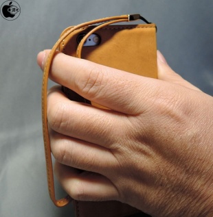 ハンドストラップは、ケースの上側に装備されているため、ストラップが上から下に垂れ、落下防止のために手を通しやすいです。