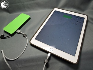 今度は、側面にあるUSBポートに、Lightningケーブルを接続し、iPad Air 2の充電をしてみました。