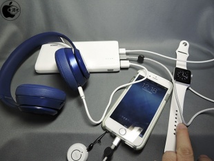 iPhone 6は1.3A、Apple Watch Sportは1.0A、Beats by Dr.Dre Solo2 Wirelessは1.0Aで充電されますが、合計最大4Aに収まるため、3つとも充電が可能でした。