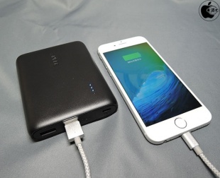 Anker PowerCore 10400にLightningケーブルを接続し、iPhone 6を充電してみました。