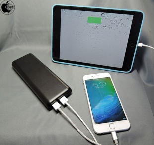 Anker PowerCore 15600にLightningケーブルを2本接続し、iPhone 6とiPad mini 3を充電してみました。
