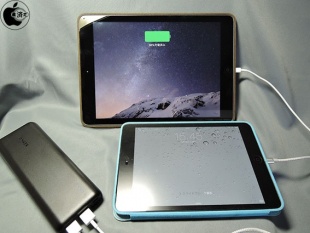 今度は、iPad Air 2とiPad mini 3の2台同時充電が可能か試してみたところ、どちらも充電することが出来ました。