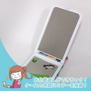 ケースの内部に鏡を搭載し、ICカードを収納して、自動改札機をタッチ&スルーことも可能です。