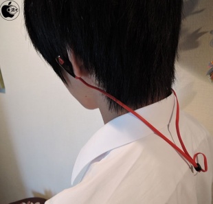 イヤホンを後ろから回して耳に装着するため、イヤホンケーブルは首後ろに位置するようになります。