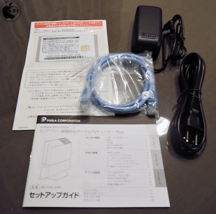 本体の他に、デジタル放送を受信するためのminiB-CASカード、電源アダプタ、有線LANケーブル、セットアップガイド、保証書などが同梱されています。