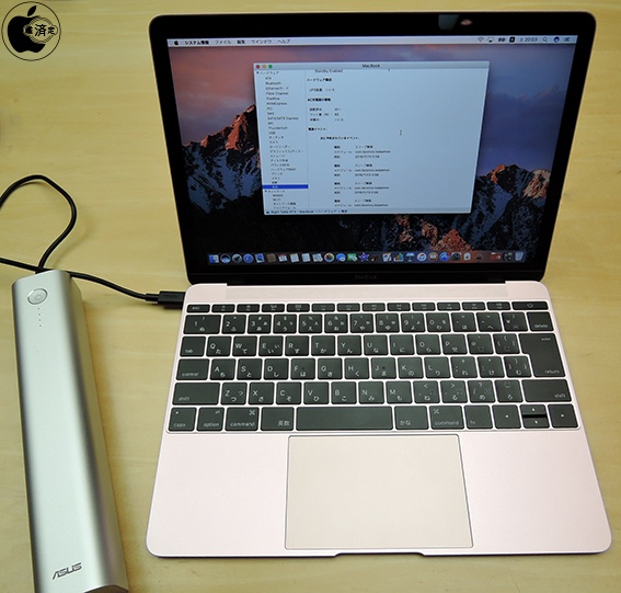 ASUS ZenPower Maxに付属するUSB-Cケーブルを使用し、MacBook (Retina, 12-inch, Early 2016)のUSB-Cポートに接続してみました。