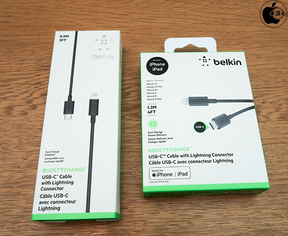 Apple Storeで販売されている「Belkin BOOST↑CHARGE USB-C - Lightning Cable」は、コネクタやケーブル材質等は同じですが、長さが90cmと短くなっています。