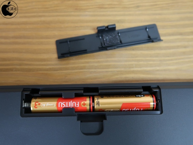 REALFORCE R3キーボード for MacをBluetooth接続で使用する場合、付属する単三電池2本を本体に入れます。