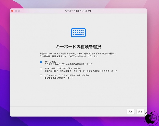 その後「キーボード設定アシスタント」が表示され、その後の手順に従い設定を完了させます。
