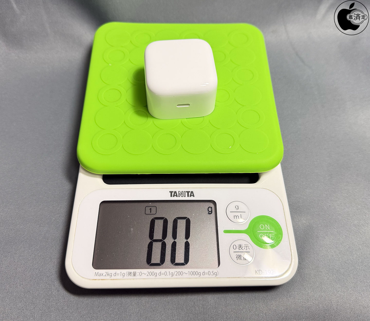 40Wダイナミック電源アダプタ(最大60W対応)本体の重さは、実計測値「80g」でした。
