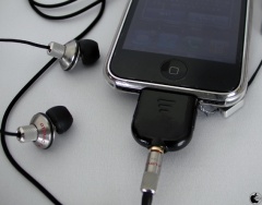 さっそく、iPhone 3GSのDock コネクタに接続し、Atomic Floyd製の高解像度カナル型イヤホン「HiDefDrum AcousticSteel」を接続してみました。
