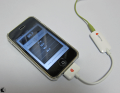 FMラジオの音声は、iPhone 3GSのヘッドフォン端子ではなく、iFM本体のヘッドフォン端子に接続して聴取する仕組みです。