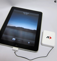 次に、iPadへの充電が行えるかどうが試してみたところ、ちゃんと充電中の表示がされました。