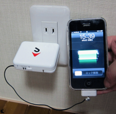 本体を電源コンセントに接続し、iPhone 3GSのDockコネクターに接続したところ、ちゃんと充電することが出来ました。