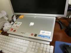 私は、普段、デスクトップモードで使っているので、23-inch Cinema HDの下に置いて、その上にMacBook Proを乗せてみたところ、23-inch Cinema HDの底面の高さとギリギリでした。