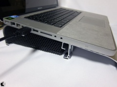 MacBook Proを乗せた状態の側面を見てみると、傾斜が緩いため、手前のパームレスト部分は、かなり高さが生じてしまっていることが確認出来ます。