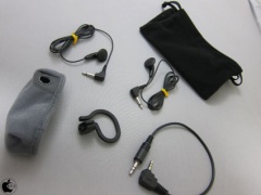付属品は、モニター用のイヤホン(2個)、イヤホンハンガー、アームバンド、ポーチ、ウインドスクリーン、録音ケーブルなどです。